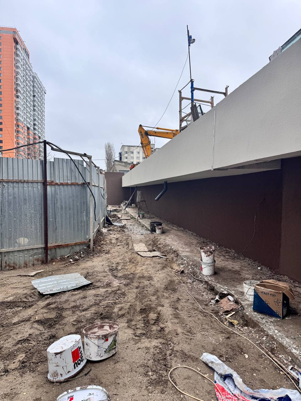 - Завершено фасад паркінгу (низька частина)