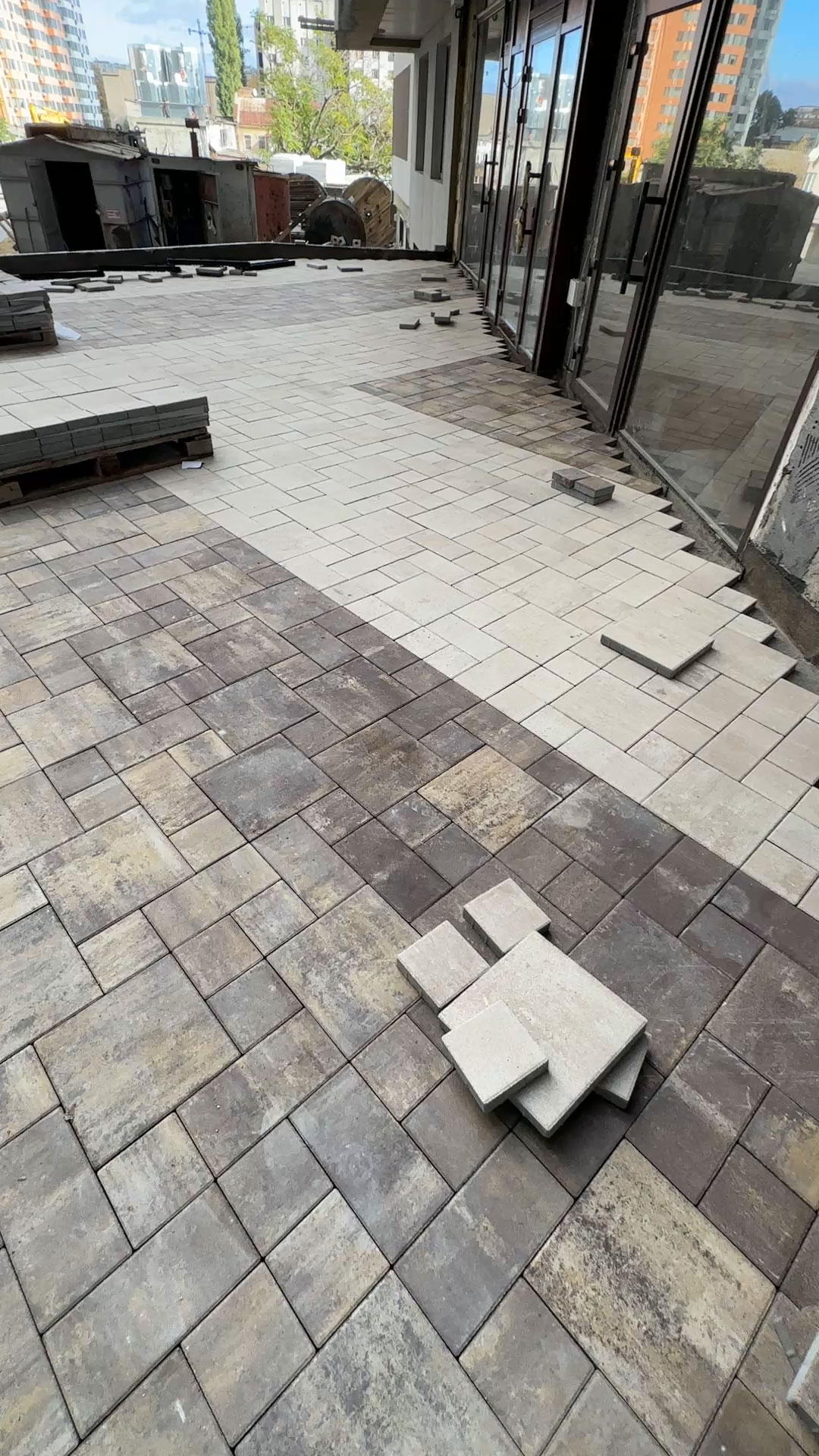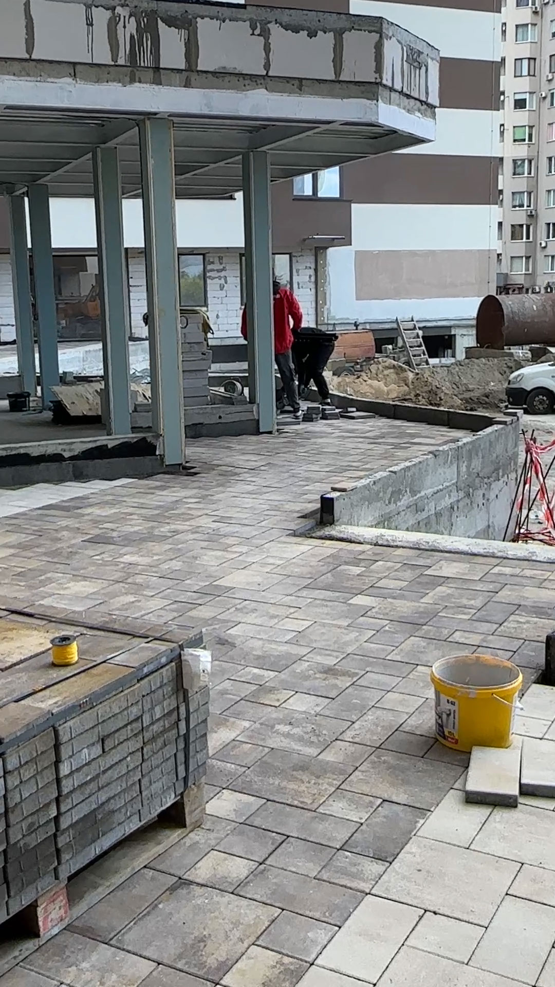 - Благоустрій тротуарною плиткою у дворі (подиум)